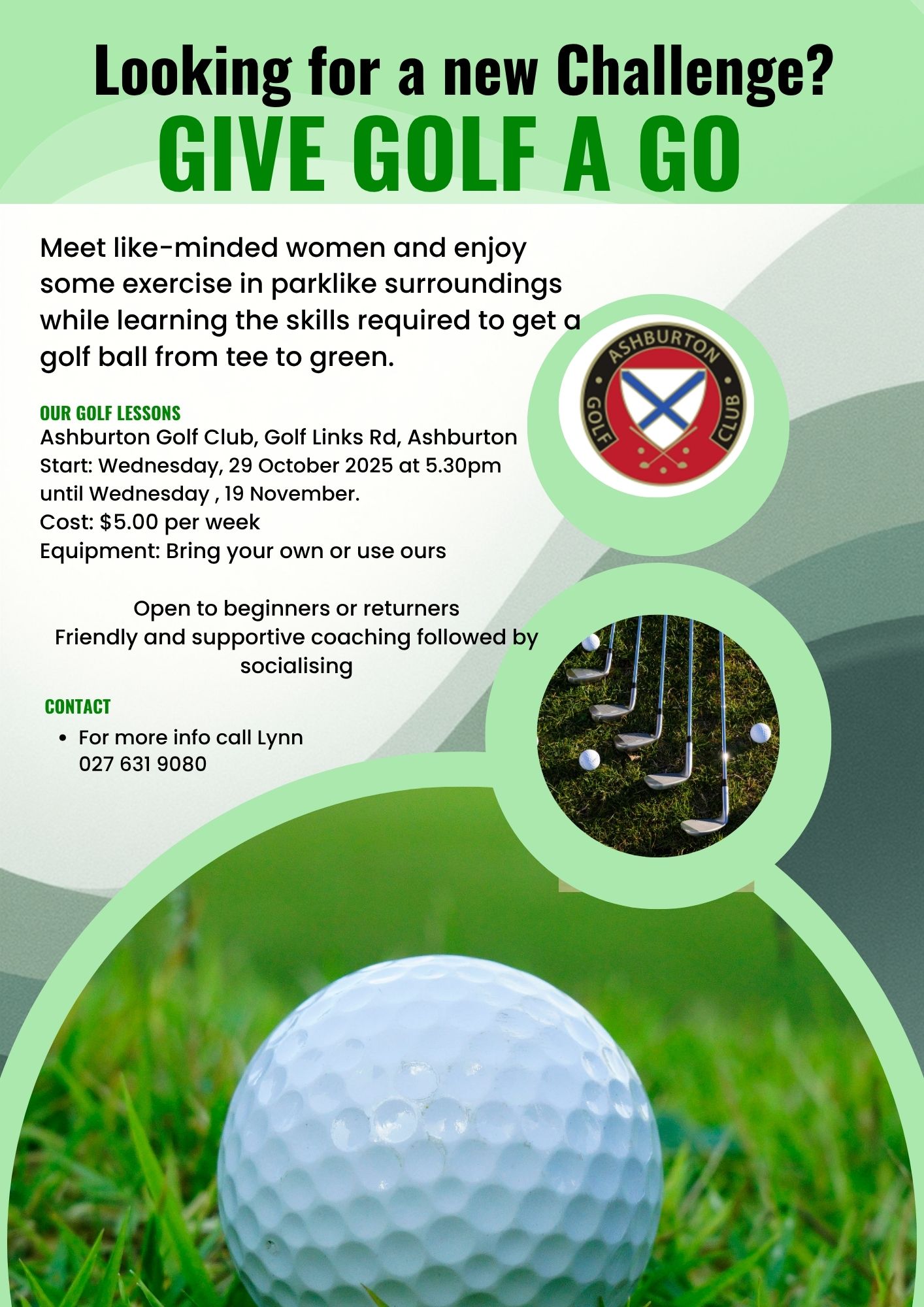 Come on over to the Ashburton Golf course Wednesday evenings for a little golf and socialising
